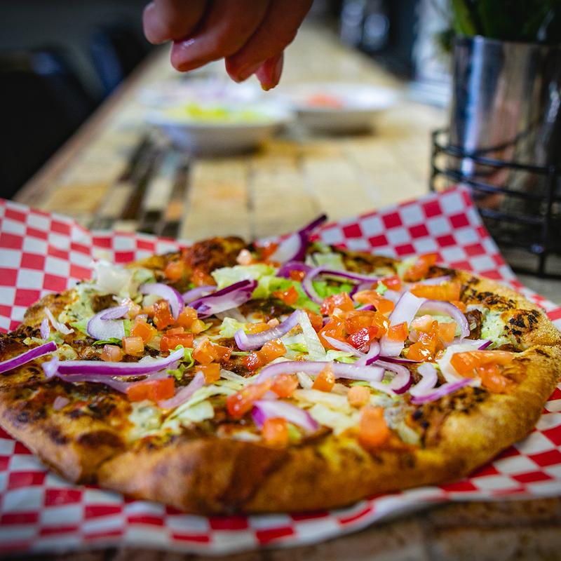 10" | 14" | 18" | Garlic parmesan sauce, chicken, bacon, cheddar blend; house ranch & green onions post-bake (fresh jalapenos & buffalo sauce for the kick!)